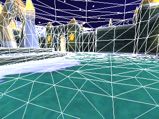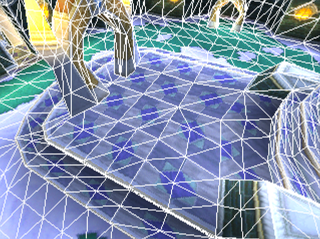 La tessellation adaptative est l'un des pilier majeur du rendu "stylisé PS1". A la fois problème et solution, elle permet un rendu à peu près correct en l'absence totale de Z-buffer et de mathématique complexe, tout en occasionnant les sauts de texture typiques de cette génération de console impossibles à reproduire finement avec des techniques de shader procéduraux.